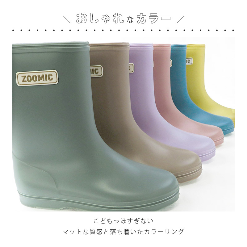 レインブーツ キッズ 子供用 長靴 レインシューズ 男の子 女の子 ショート丈 ミドル丈 13cm 14cm 15cm 16cm 17cm 18cm 19cm ズーミック 靴 防水 雨具 雪 ベビー