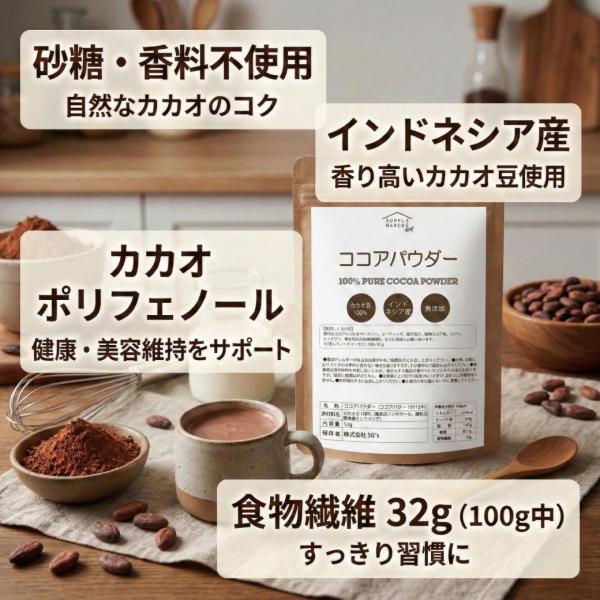 送料無料 ピュアココアパウダー 500g 純ココア 無糖 カカオ豆100% インドネシア産 無香料 無着色 無添加 砂糖不使用 ココアパウダー ココア 純 大容量 業務用