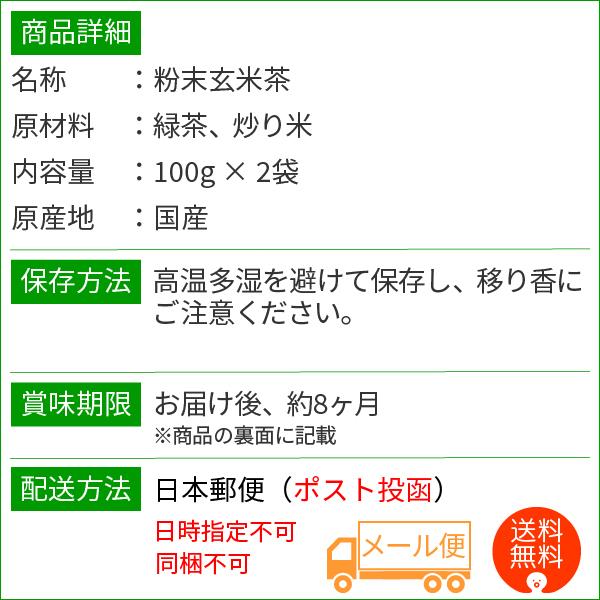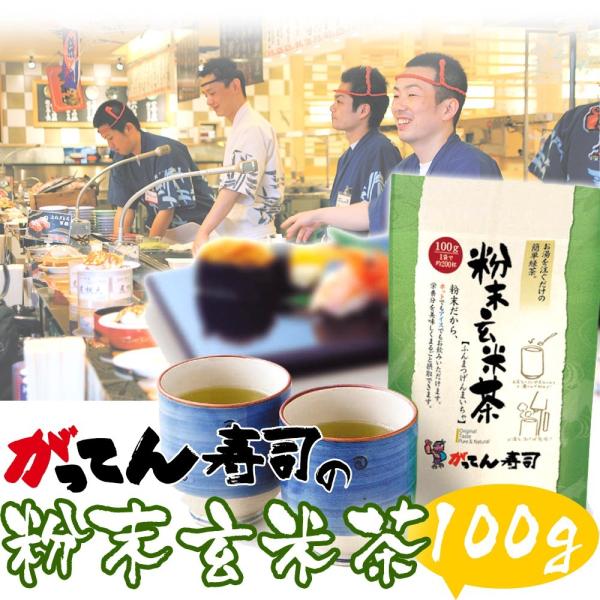 粉末玄米茶100g×2袋(約400杯) 送料無料 メール便でお届け 国産 玄米粉茶 お茶 粉末茶 アイスティー カテキン がってん寿司