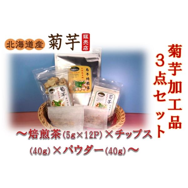菊芋加工品3点セット 菊芋焙煎茶 5g×12  菊芋チップス 40g  菊芋パウダー 40g  菊芋 キクイモ 北海道産 無農薬