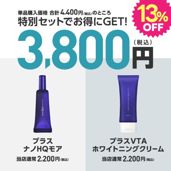 ハイドロキノン クリーム 4% ヒト幹細胞培養液 レチノール ヒト型セラミド 薬用 美白クリーム プラスナノHQモア + プラスVTAホワイトニングクリーム セット