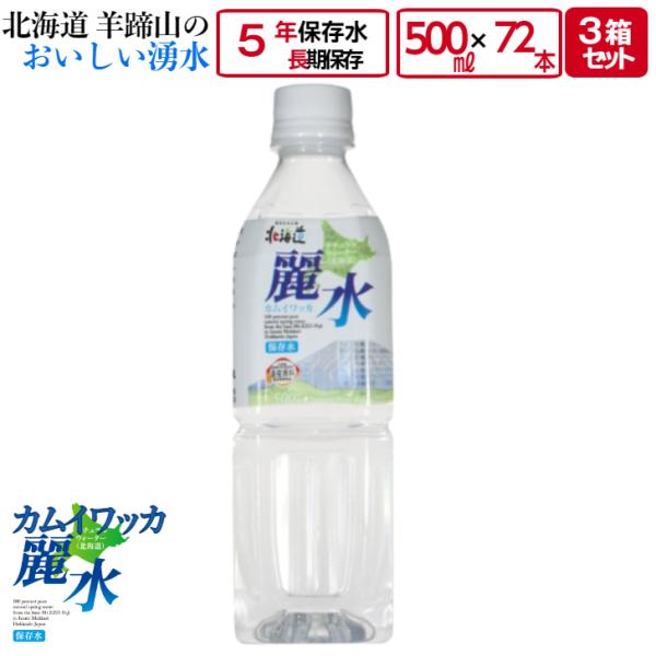 5年 保存 ミネラルウォーター カムイワッカ麗水 500ml×72本 (500ml入×24本×3箱)セット 長期保存水 災害用 備蓄用 非常用 水 非常水 備蓄水 送料無料