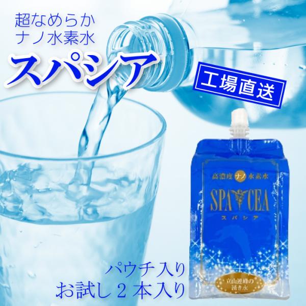 工場直送 ナノ水素水 スパシア 550ml お試し2本 水素を逃がさないアルミパウチ 出荷時水素量約1.3ppm 立山連峰 天然水 雪解け水 軟水 特許製法 健康 美容 飲料