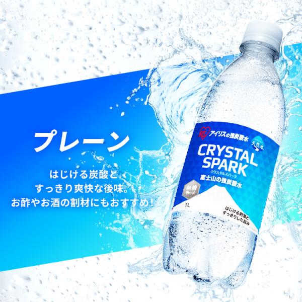 炭酸水 1L 12本 レモン プレーン 強炭酸水 炭酸 ミネラルウォーター 天然水 無糖 割り材 まとめ買い アイリスオーヤマ CRYSTAL SPARK クリスタルスパーク *