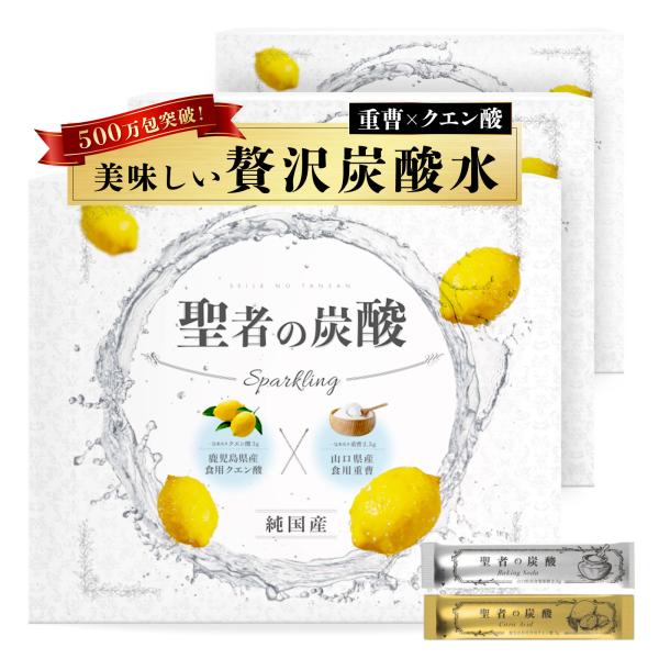 聖者の炭酸 3ヵ月分 重曹 クエン酸 食用 レモン風味 個包装 GMOフリー 純国産 重曹クエン酸水 食用重曹 食用クエン酸 飲む重曹 飲むクエン酸 各30包×3 計180包