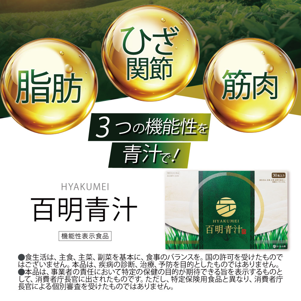 青汁 膝 関節 高級 宇治抹茶【脂肪改善×筋肉維持】 プロテオグリカン II型コラーゲン イソフラボン 大麦若葉 機能性表示食品 百明青汁 さくらの森 1箱