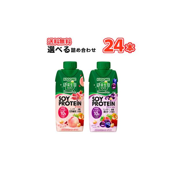 カゴメ 選べる 野菜生活100スムージー SOY PROTEIN ソイプロテイン 330ml 紙パック (12本入を2種選べる)24本セット/アサイーMix ざくろMix