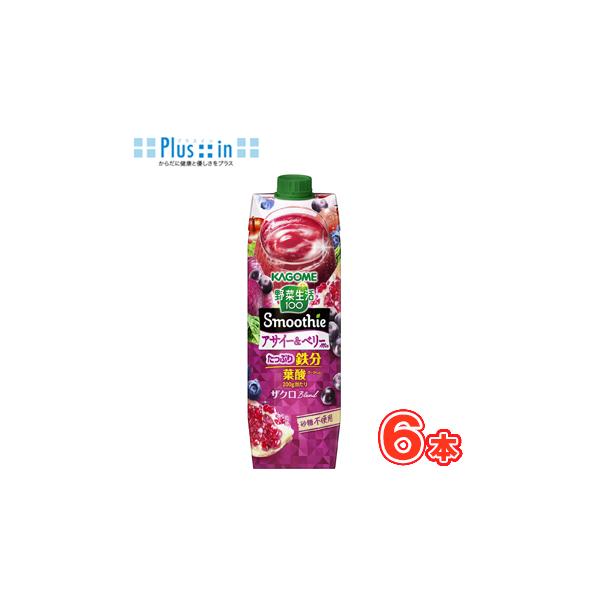 カゴメ 野菜生活100 スムージー アサイー&ベリーmix 1000g×6本入 紙パック 野菜ジュース スムージー 食物繊維 Smoothie ベリー 鉄分 やさい〕