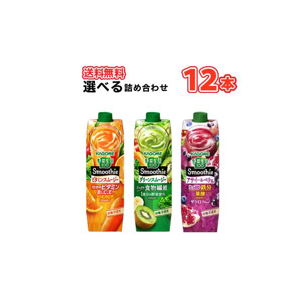 カゴメ 選べるスムージー 1000g紙パック (6本入を2種選べる)合計12本セット 野菜生活100 スムージー Smoothie 食物繊維 ビタミン キウイ アサイー