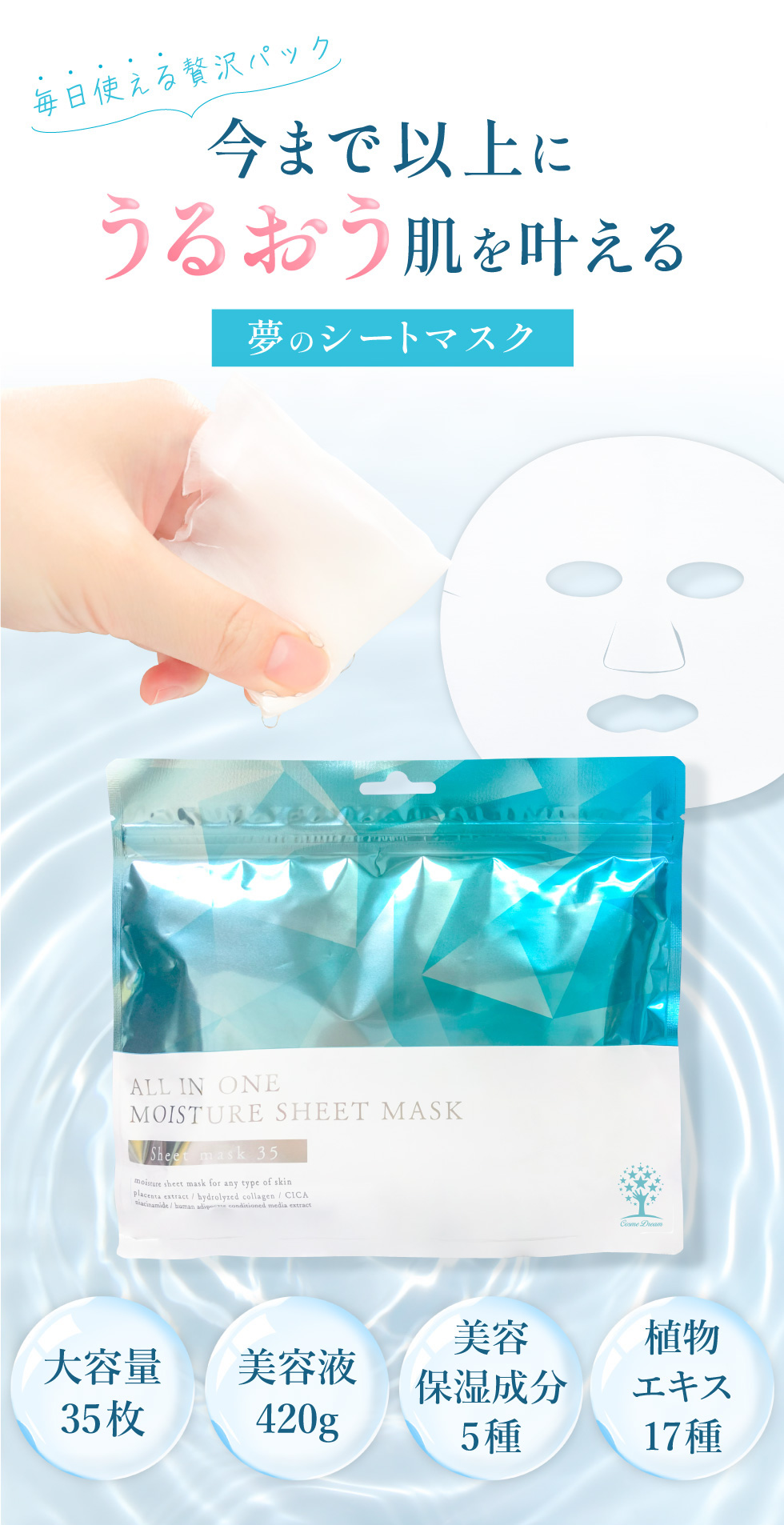 シートマスク 35枚入り 2個セット パック フェイスパック 大容量 オールインワン 保湿 毛穴 美容液 乾燥肌 毎日 韓国 メンズ 夢のシートマスク ポイント利用