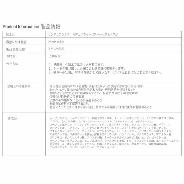センテリアン24 マデカメラキャプチャーセラムマスク 4枚入り