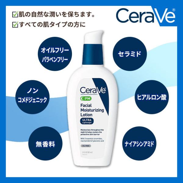 セラヴィ 夜用 フェイシャル モイスチャライジングローション 無香料 89ml (3floz) Cerave Facial Moisturizing Lotion PM 保湿