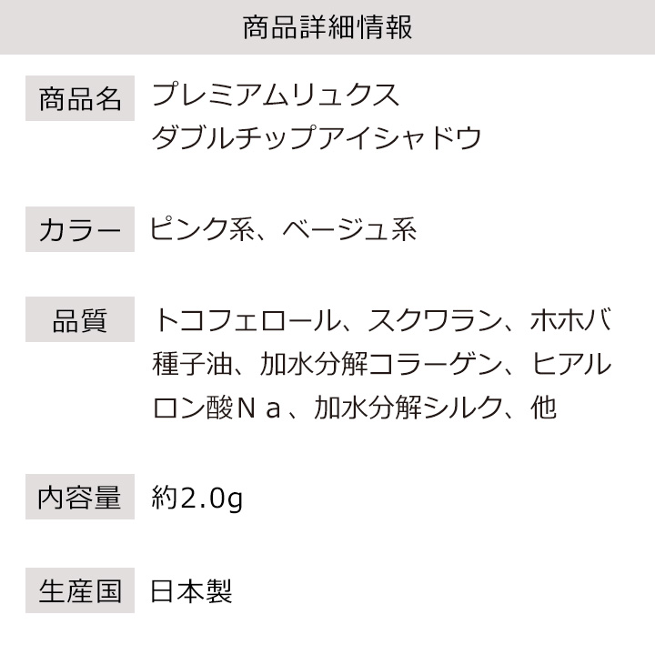 プレミアムリュクス ダブルチップ アイシャドウ [Z3403] コスメ 化粧品 アイメイク 化粧 目元 チップ 簡単 時短 ピンク ベージュ ブラウン