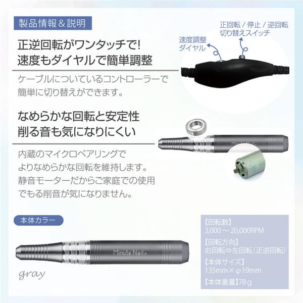 ネイルマシーン ネイルオフ 防塵キャップ付き USB式 Minute NaiL Pro ミニットネイルプロ ネイルマシン ビットセット付き 無段階スピード調整 正逆回転