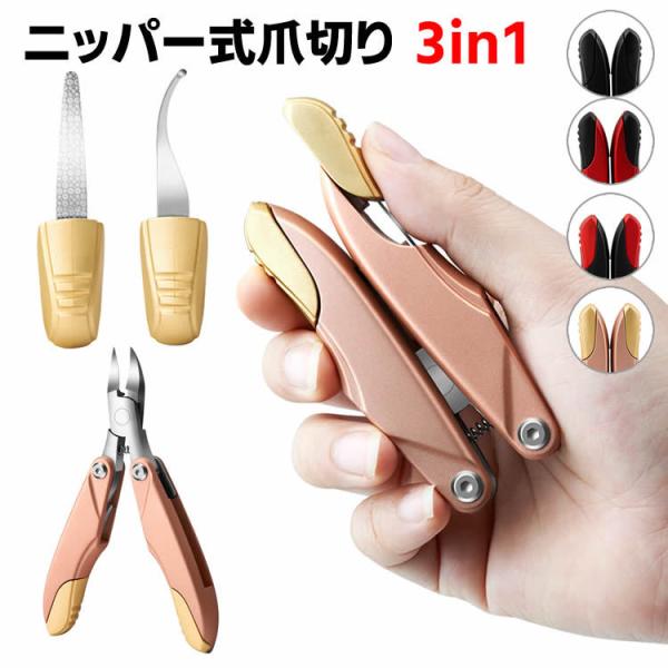爪切り ニッパー ステンレス製 折りたたみ式 つめきり ゾンデ/爪やすり 付き 爪切りセット 変形爪などに最適 ニッパー爪切り 手足適用 変形爪 巻き