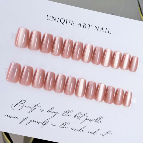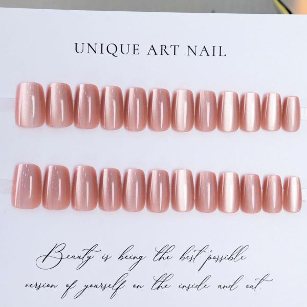 ネイルチップ 24枚 セット つけ爪 ピンク マグネット 光沢 爪 手指 パーツ 両面テープ 48枚 スティック やすり アルコールパッド付き キャッツアイ