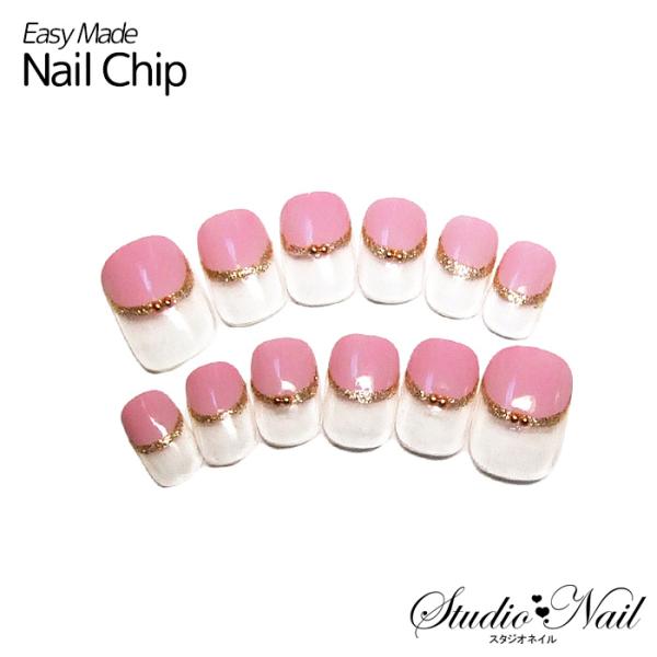 ネイルチップ ショート ピンク バルーンフレンチ ゴールドライン シンプル ネイルチップ12枚入り [KS] 小さい爪 ジェル [KS]