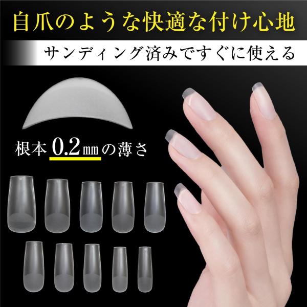 ネイルチップ スクエア 240枚 10サイズ 付け爪 ロング 長さだし クリア 透明 セルフネイル ジェルネイル サンディング済み きらきらぷんぷん丸 NTIP-004