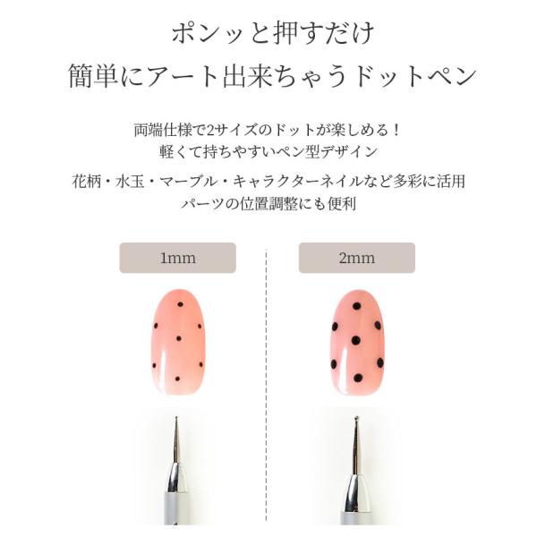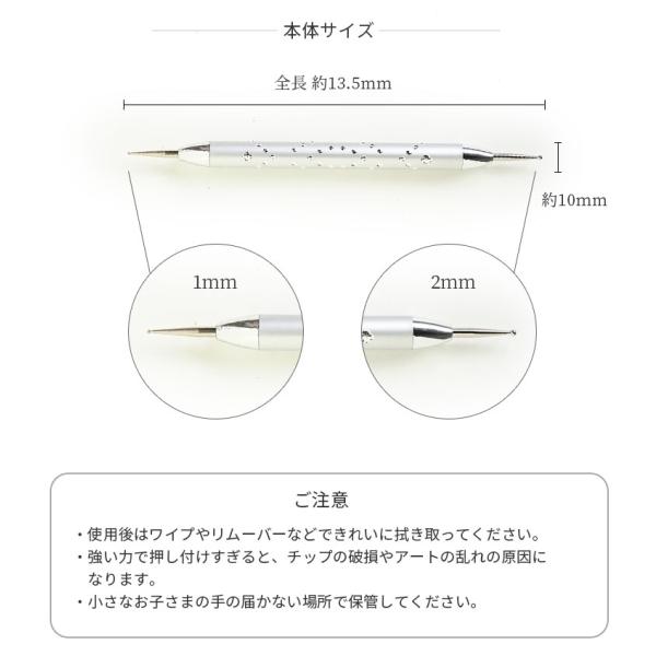 ネイルツール シルバーストーンドットペン 1mm 2mm ネイルドットペン シルバー ドットネイル 水玉 ジェルアート ネイルアート セルフネイル ネイル用品