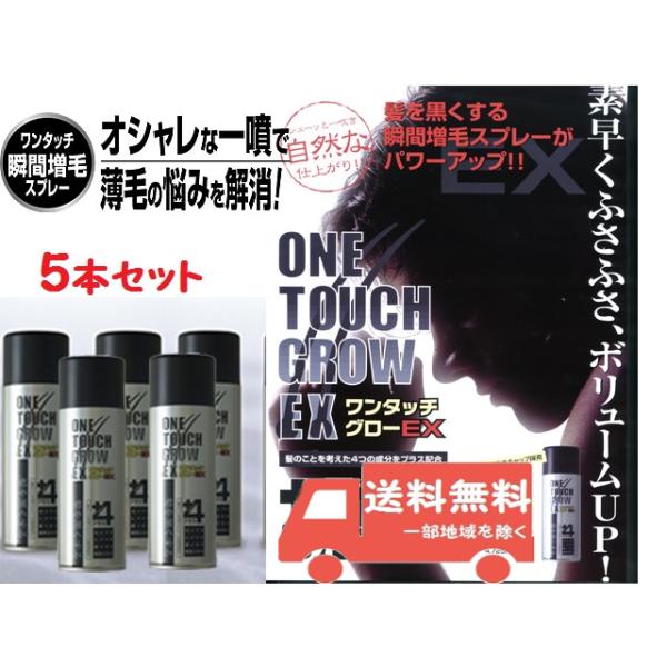 ワンタッチグローEX 200g 5本 薄毛隠し 瞬間増毛スプレー (男女兼用) 白髪にも リピーター続出 素早くふさふさボリュームアップ