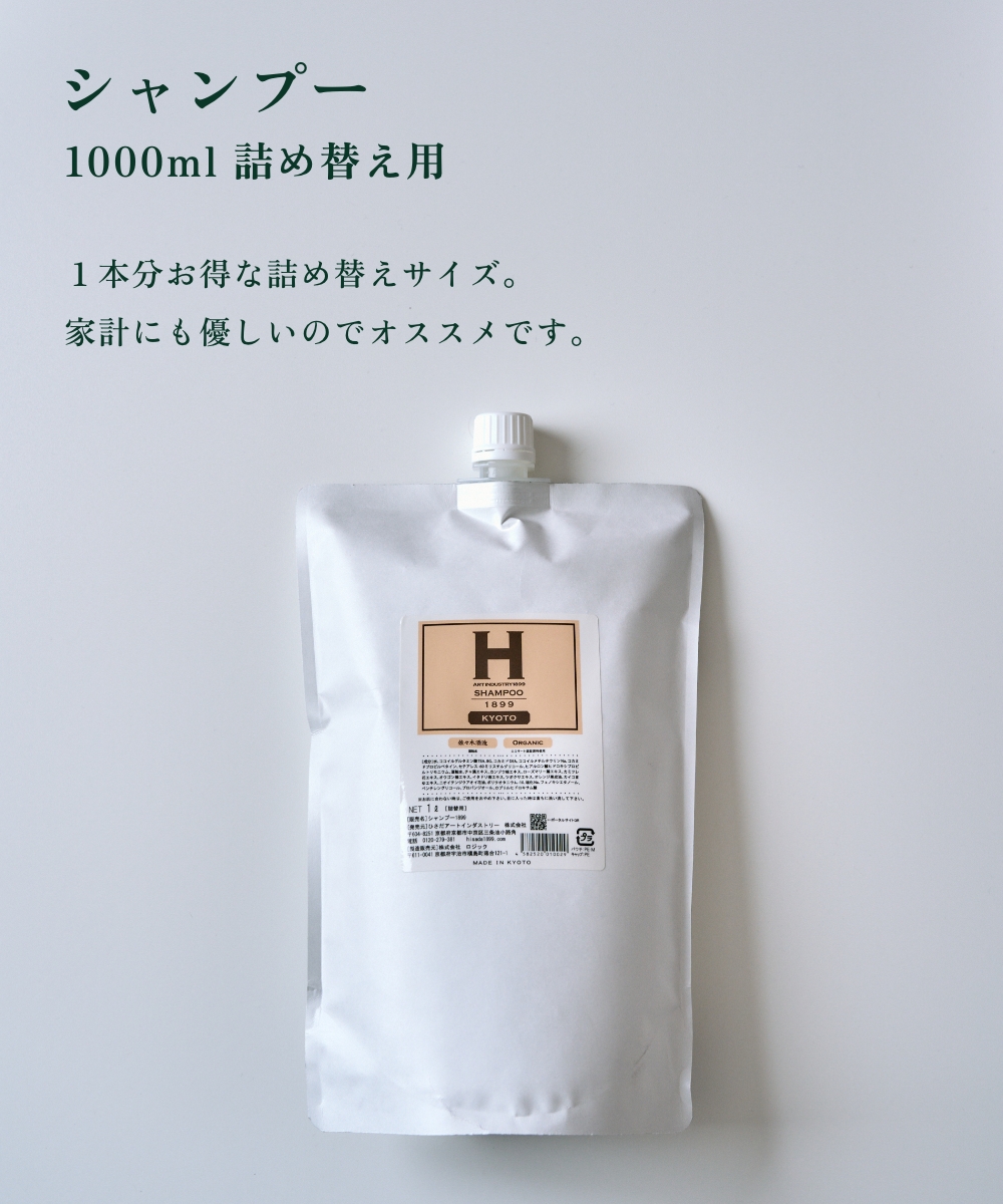 ひさだアートインダストリー SHAMPOO 1899 KYOTO 1000ml 詰め替え用リフィル シャンプー ノンシリコン 京都 アミノ酸系洗浄成分 オーガニックハーブ