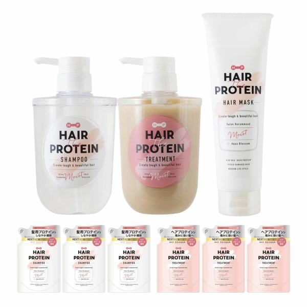 ヘアザプロテイン モイスト ヘアマスク 9点セット (シャンプー/トリートメント/ヘアマスク/シャンプー詰替×3/トリートメント詰替×3)