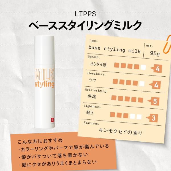 ヘアミルク LIPPS 公式 ベーススタイリングミルク キンモクセイの香り 95g メンズ 男性 ヘアケア