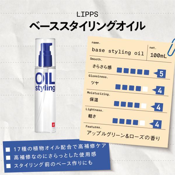 ヘアオイル LIPPS 公式 ベーススタイリングオイル アップルグリーンの香り ダメージ用 100ml ヘアケア ダメージケア