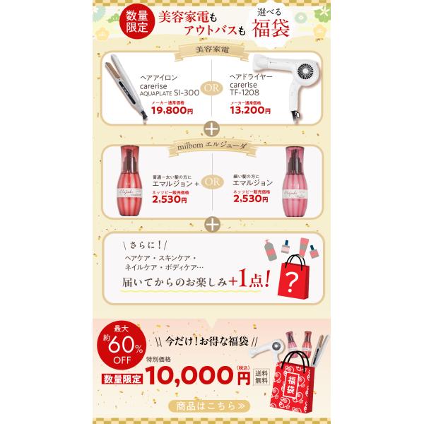福袋 2026 新生活応援 ドライヤー・ヘアアイロン & コスメ 選べる福袋 ケアライズ TF-1208/SI-300 エルジューダ エマルジョン 美容家電 ヘアケア サロン専売品
