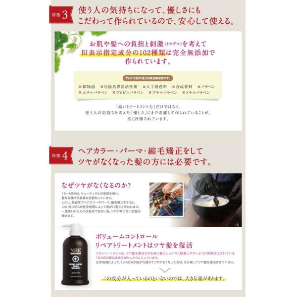 シャンプー解析ドットコム トリートメント部門 NHE ボリュームコントロールリペアトリートメント500g ボトル くせ毛 うねり 広がり 縮毛矯正 パサつき ダメージ