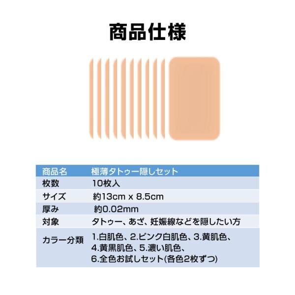 タトゥー隠し シール 10枚入 13*8.5cm 極薄 傷跡 タトゥー 隠す カバー 肌色 耐水 目立たない 簡単 海 プール 温泉 ファンデーションテープ コンシーラーテープ