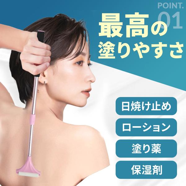 背中 塗る グッズ ローションアプリケーター 背中クリーム棒 伸縮自在 ヘッド交換可能 届かない場所 ローション 日焼け止め 塗り薬 軟膏