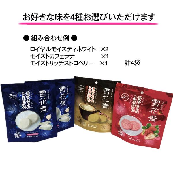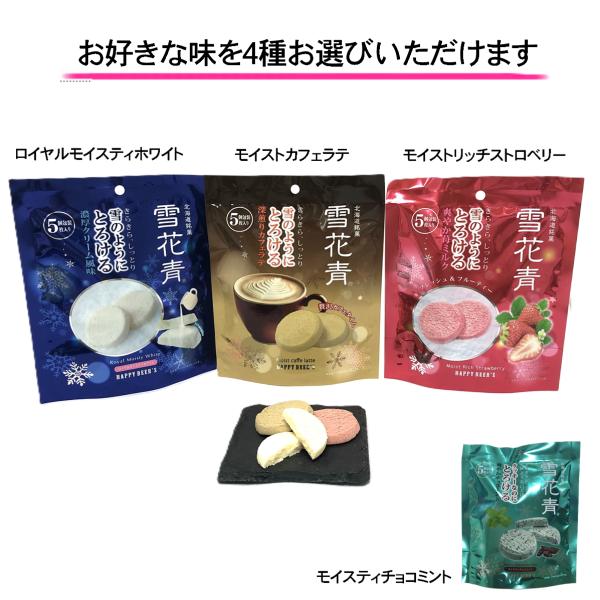 選べる 雪花青 5枚入×4袋 ロイヤルモイスティホワイト モイストリッチストロベリー モイスティチョコミント 函館 青華堂 ネコポス 送料込