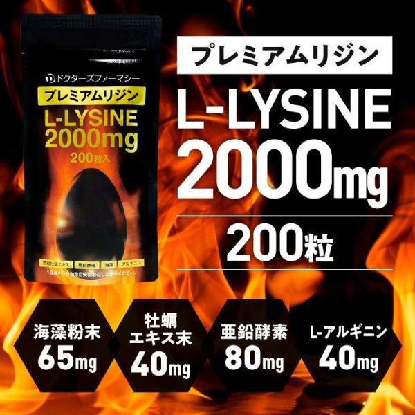 Lリジン 2000mg 国産 リジン サプリ アミノ酸 牡蠣 亜鉛 アルギニン サプリメント ドクターズファーマシー プレミアムリジン 200粒