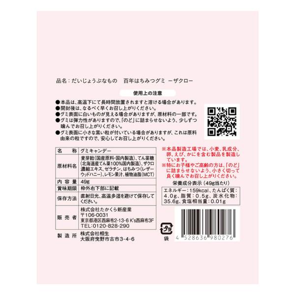 3袋セット だいじょうぶなもの 百年はちみつグミ ざくろ味 無添加 上白糖不使用 レザーウッドハニーTA5+ 美容 健康 美肌 美肌効果 アンチエイジング ギルトフリ
