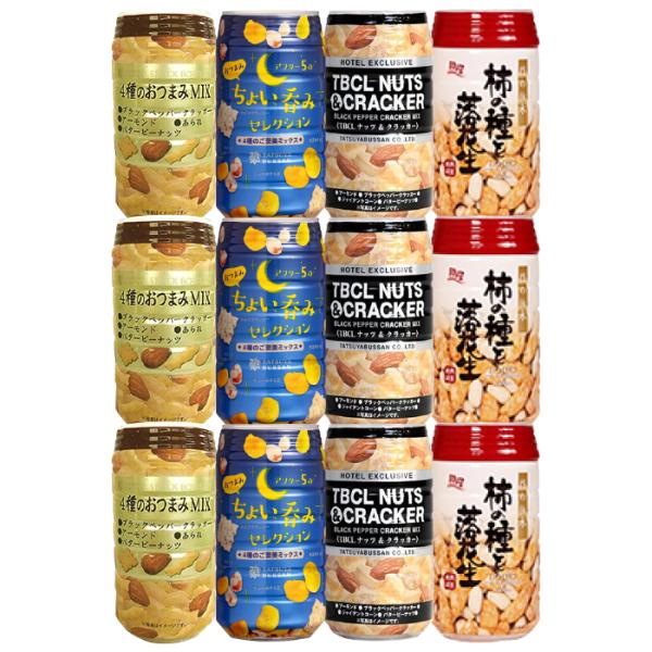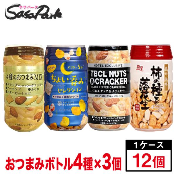 おつまみボトル 4種×3個ずつ 合計12個セット(4種のおつまみMIX3個・ちょい呑みセレクション3個・柿の種と落花生3個・ナッツ&クラッカー3個)詰め合わせ