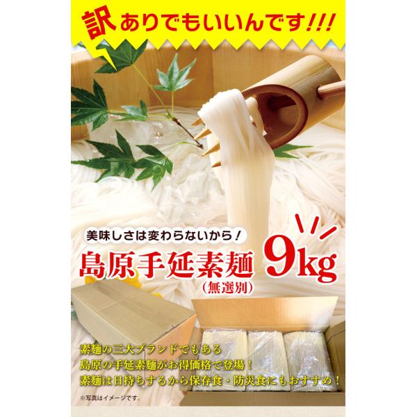 訳あり 大特価 無選別・不揃いの為 島原素麺 そうめん ソウメン 大容量 保存食 非常食 約100人前 自家需要 島原手延素麺 無選別 9kg(3kg×3袋)MSB-60