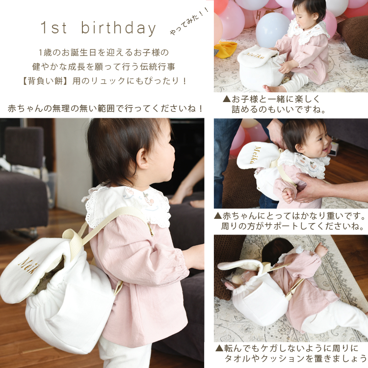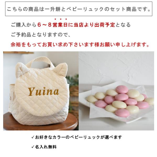 一升餅セット ベビーリュック 名入れ 一升餅リュック ねこ耳 1歳 誕生日 プレゼント お名前 赤ちゃん 出産祝い ギフト お祝い 男の子 女の子 小分け 0031set