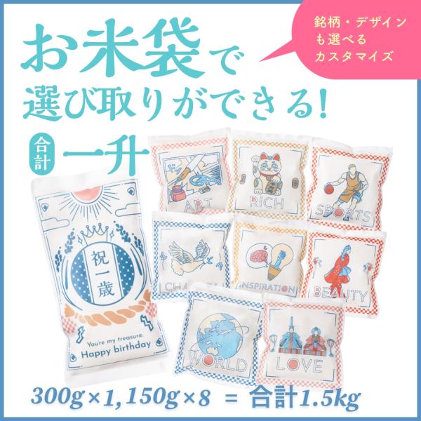 一升米 1歳 誕生日 選べる一升米 4点セット 選び取り 小分け リュック ナップサック 小分け袋 名入れ おしゃれ かわいい 米袋 写真