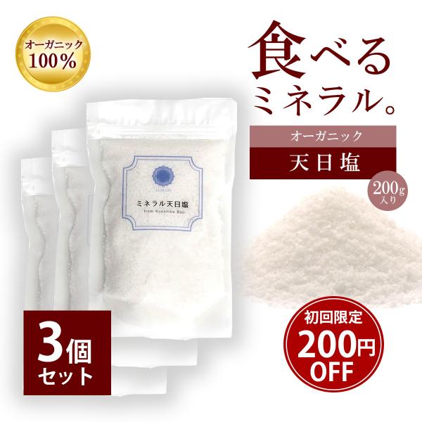 内科医 監修 天然塩 天日塩 無添加 オーガニック 有機 クサンバ 塩 自然塩 ミネラル あら塩 粗塩 手作り しお- ミネラル天日塩 200g 3個セット