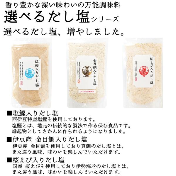 選べるだし塩 4袋セット 【(三角屋水産) 真鯛 あご のどぐろ 伊勢海老 金目鯛 塩鰹 桜えび など各160g 】計7種 送料無料