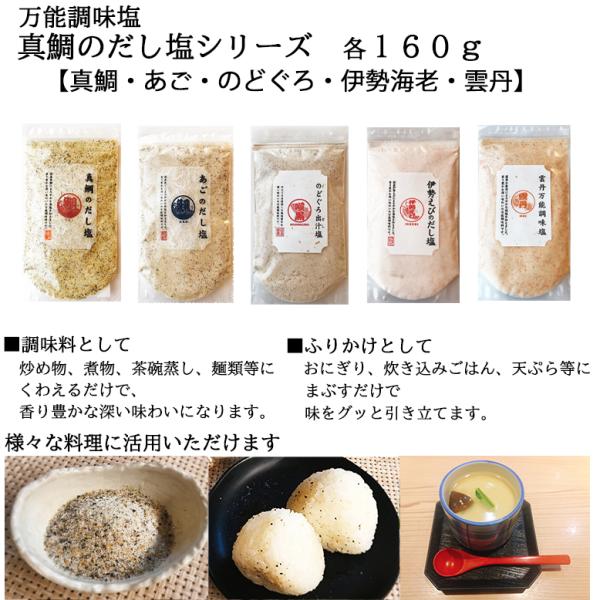 選べるだし塩 2袋セット【(三角屋水産) 真鯛 あご のどぐろ 伊勢海老 金目鯛 塩鰹 桜えび など各160g】計7種