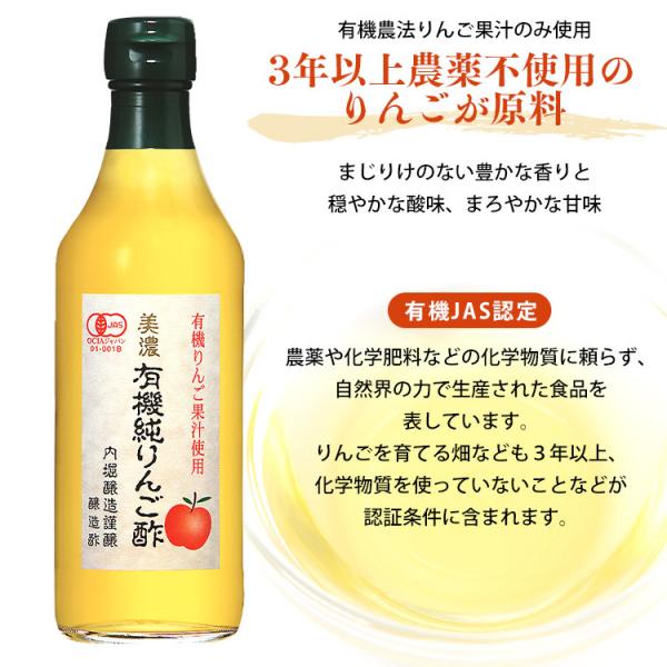リンゴ酢 りんご酢 純リンゴ酢 美濃 有機純りんご酢 内堀醸造 360ml 6本 豊かな香り 林檎酢 果実酢 お酢 料理 サラダ ドレッシング ドリンク *