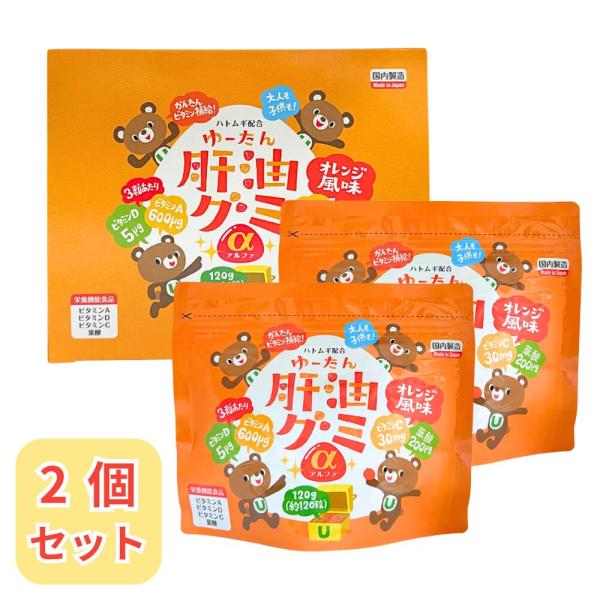 ゆーたん肝油グミ (約150粒)2箱セット かんゆ カワイイ かわいい オレンジ風味 ハトムギ ビタミンA ビタミンC ビタミンD 葉酸 子供 大人 こども おとな