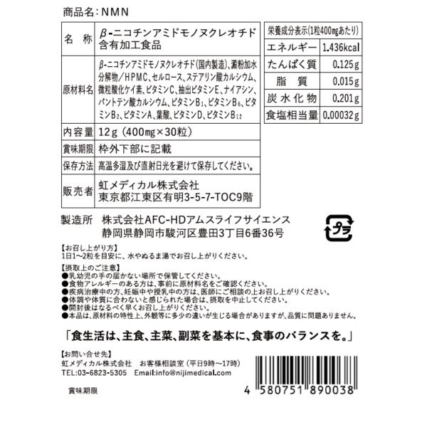 NMN250<1袋>250mg/粒 30粒入/袋 7,500mg/総量 純度100% 日本製