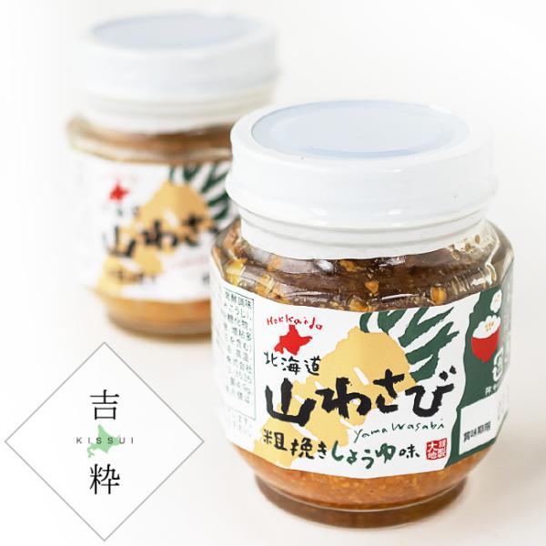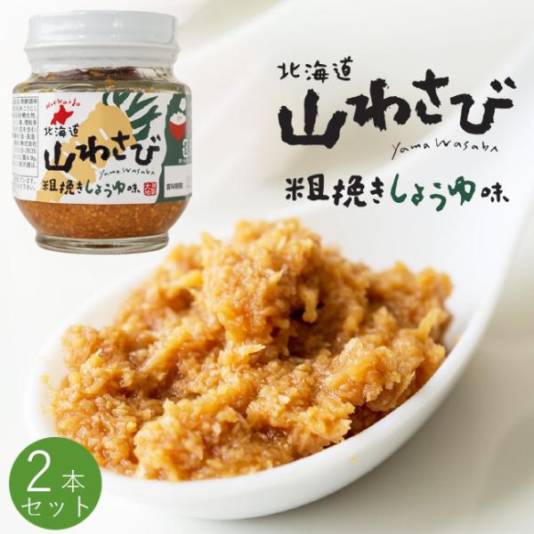 山わさび 粗挽きしょうゆ味 110g×2本【蝦夷山葵醤油漬味】粗挽きにした北海道産山わさびを醤油で味付けしました【メール便対応】