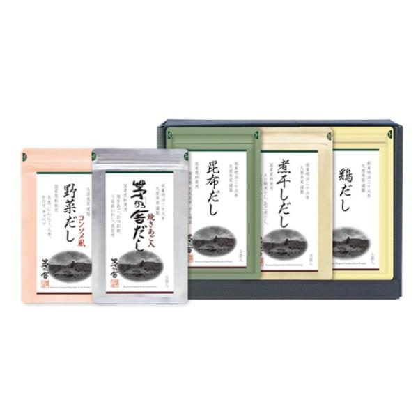 茅乃舎だし 母の日 ギフト 選べるシール付き 包装済 贈答 出汁 セット 5種類セット 各5パック入 慶事 包装 贈答箱入 プレゼント おすすめ 手土産 贈り物 お祝い