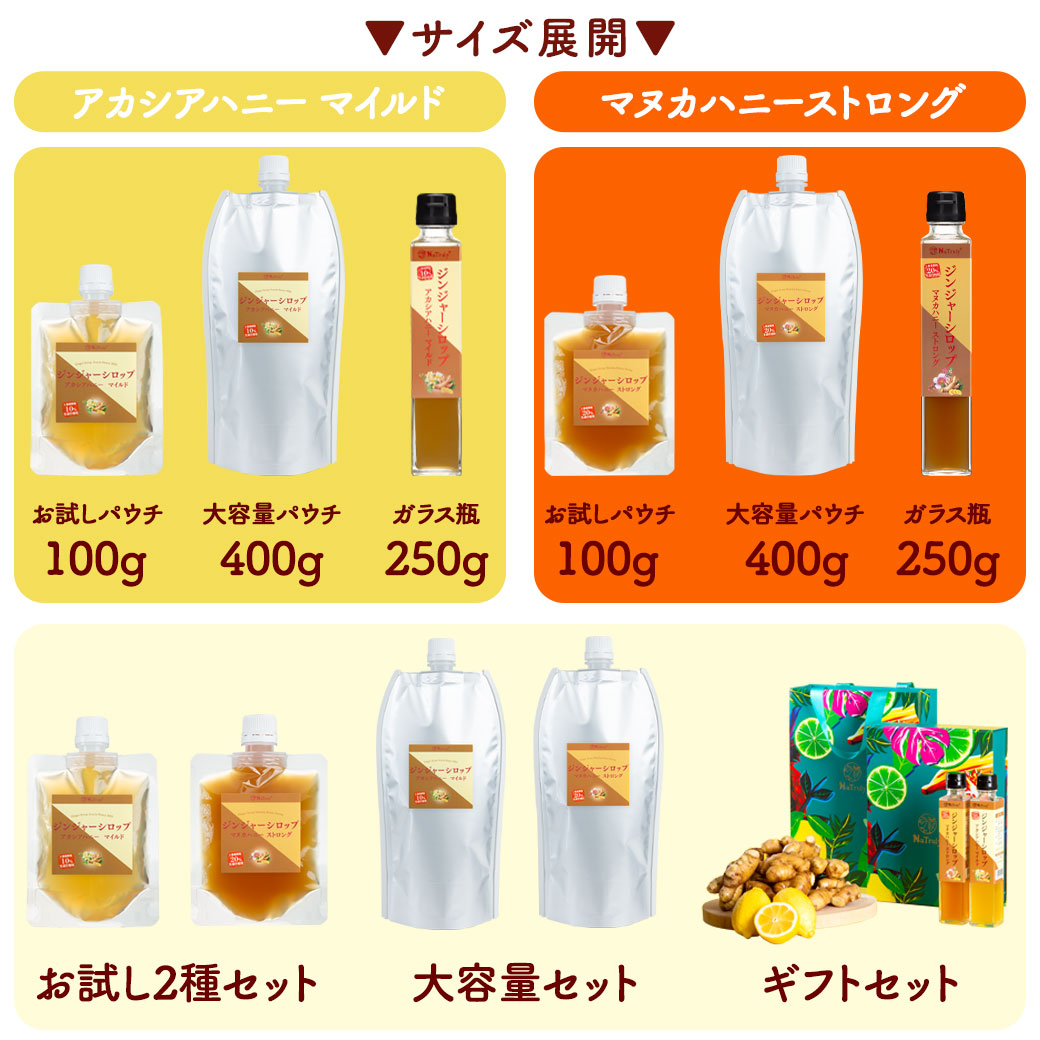 しょうが ジンジャーシロップ マヌカハニーストロング&アカシアハニーマイルド 100g×2個 無添加 ジンジャーエールの素 生姜はちみつ [初回限定3セットまで]
