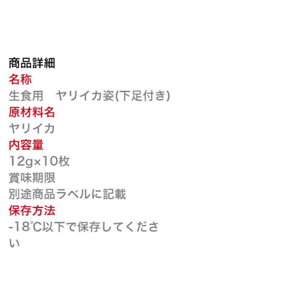 寿司 無添加 生食用 ゲソ付き やりいか姿 12g×10枚 寿司ネタ 冷凍便 生食用 のせるだけ 刺身用 海鮮丼 手巻き寿司 爆買