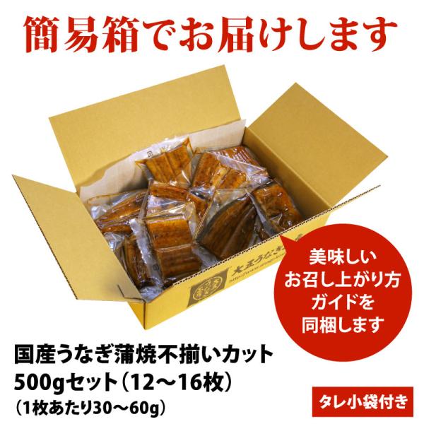 国産うなぎ 不揃いカット蒲焼 500gセット 簡易箱 鰻 ウナギ 冷凍 お弁当 うな丼 蒲焼き 個包装 小分け 大容量 自宅用 食品 土用の丑の日 爆買